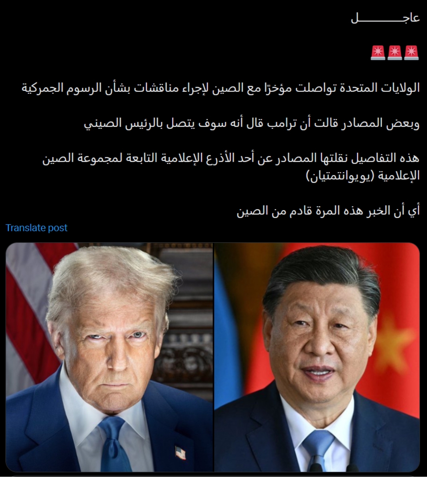 كما أن تصريحات جديدة من الرئيس الأمريكي ترامب فجر اليوم أكّدت على الخبر السابق .. وقال نصّا " احتمالية كبيرة أن نتوصّل إلى اتفاق مع الصين " .. مما جعل الأسواق أكثر ثقة بأن هناك خطوات جدّية لحلّ أزمة التصعيد في التعريفات الجمركية بين أكبر اقتصادين على مستوى العالم